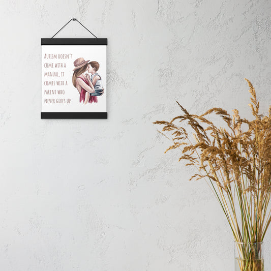 "Autism...Parent Who Never Gives Up" Poster with hangers
