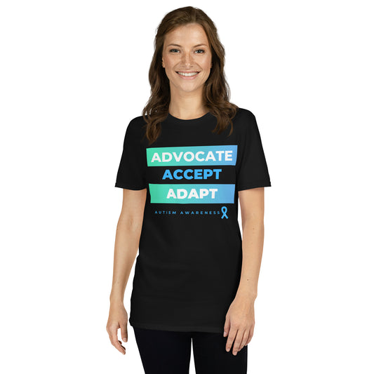 "Advocate. Accept. Adapt #AutismAwawareness" Short-Sleeve Unisex T-Shirt