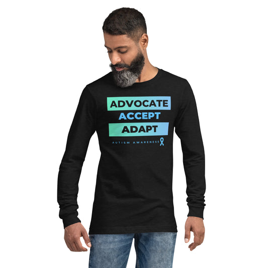 "Advocate, Accept, Adapt: Autism Awareness" Unisex Long Sleeve Tee